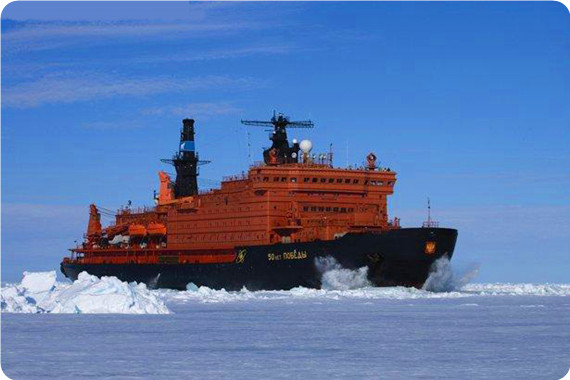 向北極航行,航行中可觀賞北極嘆為觀止的特有風光。50年勝利號是超級核動力破冰船,可以切開4-5米的厚冰,旅客們能夠親眼目睹船頭如何憑借其巨大的馬力把海上的厚冰壓碎,船身輾過冰層時所發(fā)出的如同9級地震的巨大撞擊聲會給人留下深刻的印象。船上直升機隨時待命起飛,除了擔任空中偵查,協(xié)助破冰續(xù)航外,還可搭乘旅客,鳥瞰冰河、冰山以及破冰船破冰前航冰破天驚的壯觀景象。