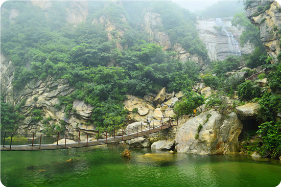 云蒙峽風(fēng)景區(qū)位于密云縣石城鄉(xiāng)水堡子村西,在密云水庫(kù)西側(cè),云蒙山東南坡。距密云縣城約22公里,距北京東直門(mén)90公里。云蒙峽風(fēng)景區(qū)以雄險(xiǎn)而曲折的西北-----東南向峽谷為主軸,上下串聯(lián)著數(shù)十個(gè)不同特色的風(fēng)景小區(qū)。而且越深入云蒙峽腹地,那些奇峰、怪石、清潭、飛瀑、野花、密林等勝景也越來(lái)越多和越優(yōu)美。這里山巒巍峨聳拔,溝壑切割幽深,峰石造型似人似獸,潭瀑交輝若鏡若練。云霧朦朧,變化莫測(cè);花木芬芳,香溢百里。游者處之,無(wú)不令人一飽眼福。春季入峽,山花爛漫,桃杏爭(zhēng)艷;仲夏入峽,清泉甘冽,消夏宜人;金秋入峽,紅葉滿山,碩果累累;隆冬入峽,雪嶺晶瑩,冰瀑奪目。