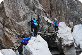 活動描述:由北京金視聽廣告有限公司組織,天地之美戶外拓展訓(xùn)練公司承辦,在北京延慶水泉溝峽谷展開了一天的野外徒步穿越活動,在活動中我們需要相互配合和協(xié)調(diào),形成力量的整合才能完成共同的任務(wù),要知道,只要不放棄,一切皆有可能。