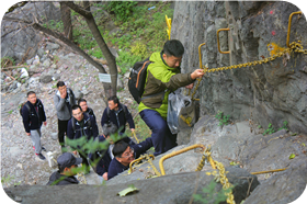 活動項(xiàng)目:狹路相逢 攀爬崖壁 鉆木取火